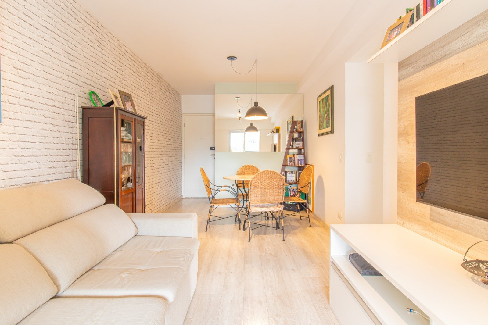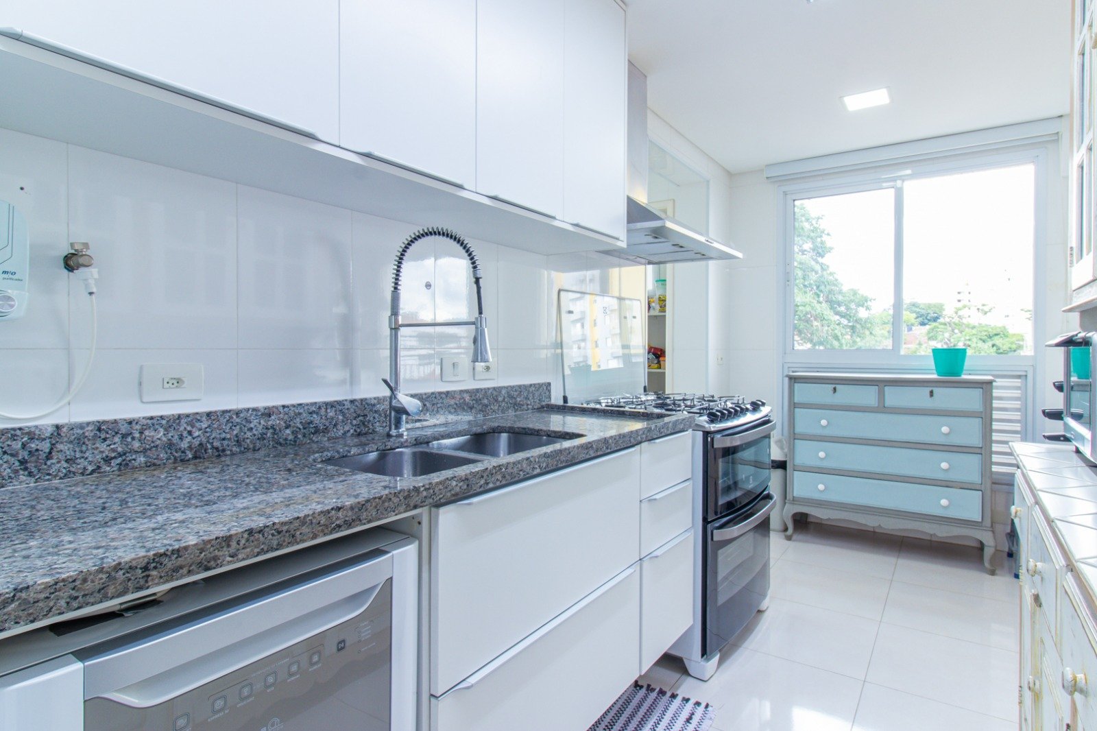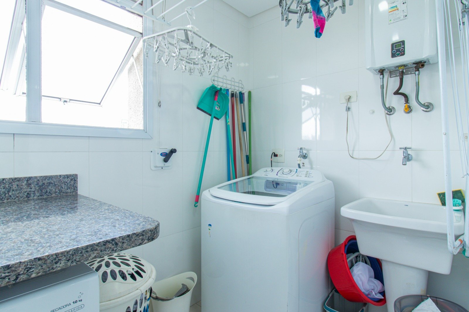 O apartamento está totalmente mobiliado, equipado com aquecedor a gás e fechadura eletrônica, trazendo praticidade e segurança no dia a dia.